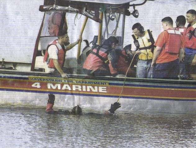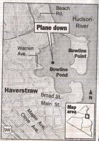 Divers search for the submerged plane in Bowline Pond, an