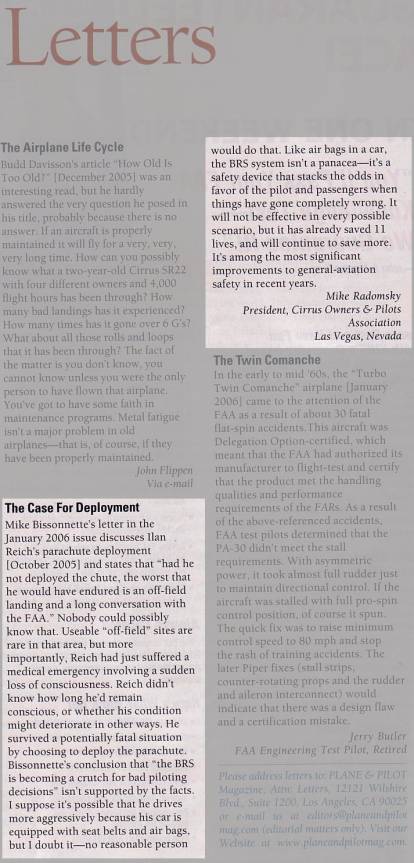 Subject: Your letter to the editor of Plane & Pilot magazine