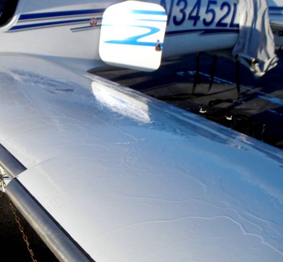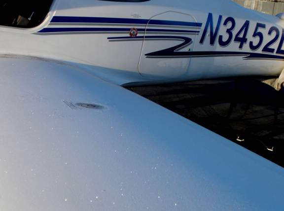 I parked my plane on the ramp overnight in Rapid City, South Dakota on Sunday night. The Rieff heater was plugged in, the cowl and canopy covers were secured. Overnight temperatures were in the 20s, with no precipitation in the forecast. By 7:30 am the temperature was 30 degrees F, the sky was clear blue, but the plane was covered in 0.25” to 0.5” of frost and ice.