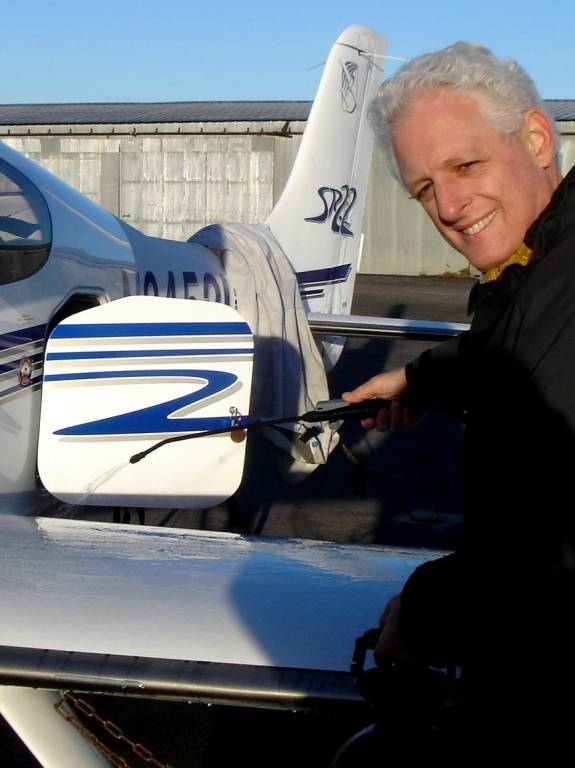 I brought along a two gallon garden sprayer ($18 at Home Depot) for just this possibility, filled it with TKS fluid, and sprayed away. Within five minutes I had effortlessly sprayed the entire plane and it all just melted away. This is a far better setup than the handheld spray bottle that I used last winter, which required a good half hour of hand squeezing to cover the plane and then scrape everything off. The garden sprayer uses more fluid, but its extremely effective in removing the frost and ice: so much so that I didn’t need to use the scraper at all. As an aside, it helps to have a pair of utility gloves on the plane, both for warmth and to avoid ruining a good pair of gloves with all that TKS fluid. Its also important to depressurize and empty out the garden sprayer before takeoff.