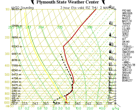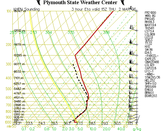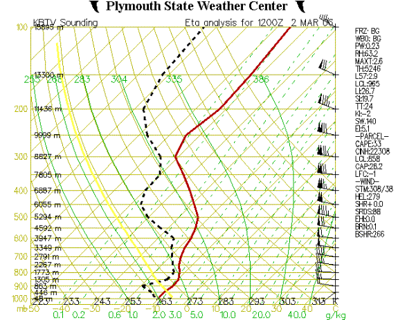 and found that only New York City was slated to actually get snow. I then looked at the Skew-T plots (my